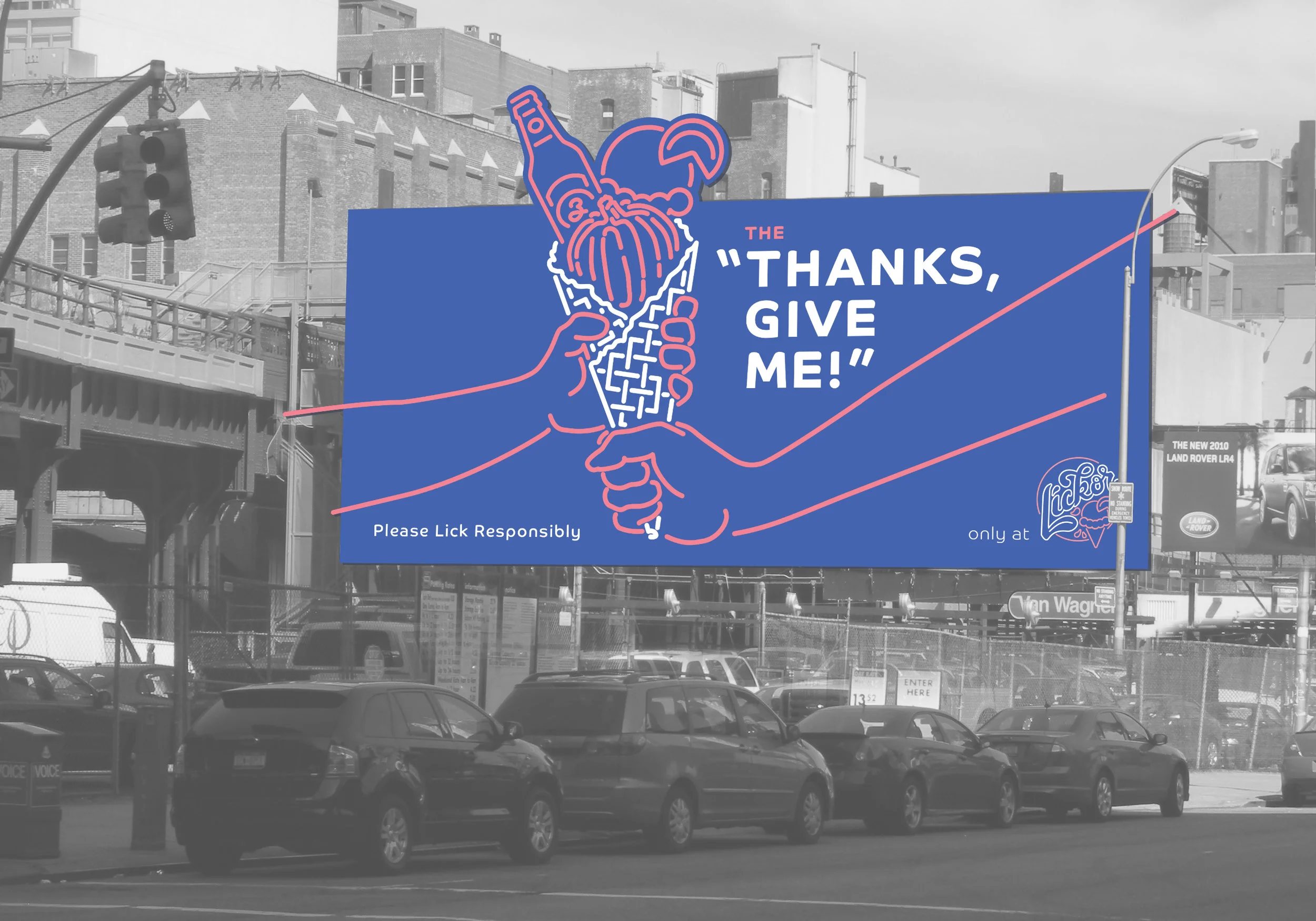 Logo development from initial sketches to final design. The design is inspired by the signage and lettering around vintage ice cream parlors and liquor stores, while the "L" is anthropromophised into a tongue. Both the full mark and the logotype are used in the branding.